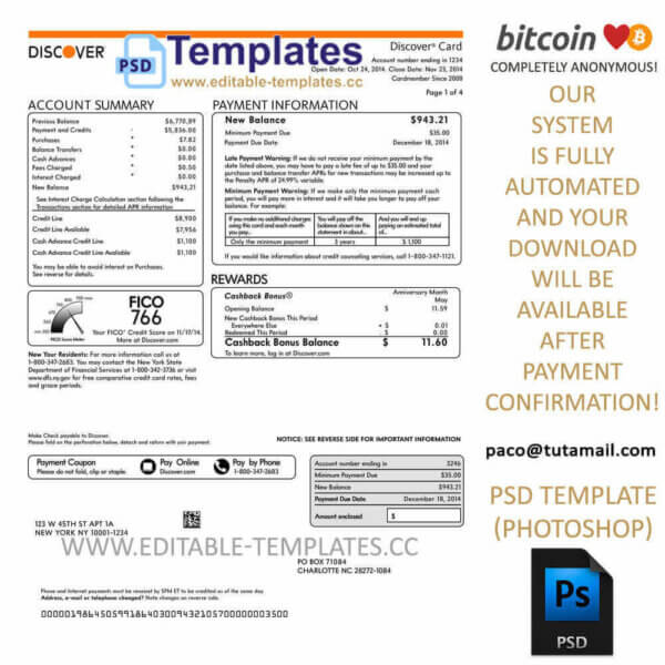 Fully editable Discover Bank Statement Template PSD (photoshop)