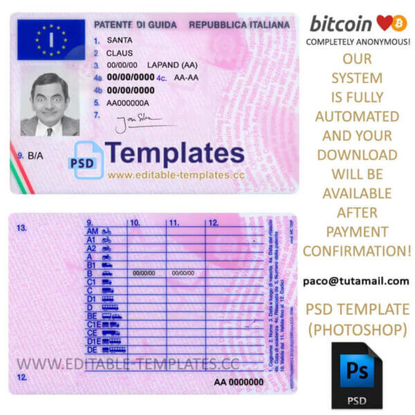 Simply download the template, open it in Photoshop, and customize the text and graphics to your liking. Enjoy your new personalized driver license template! Best quality Italy id template.