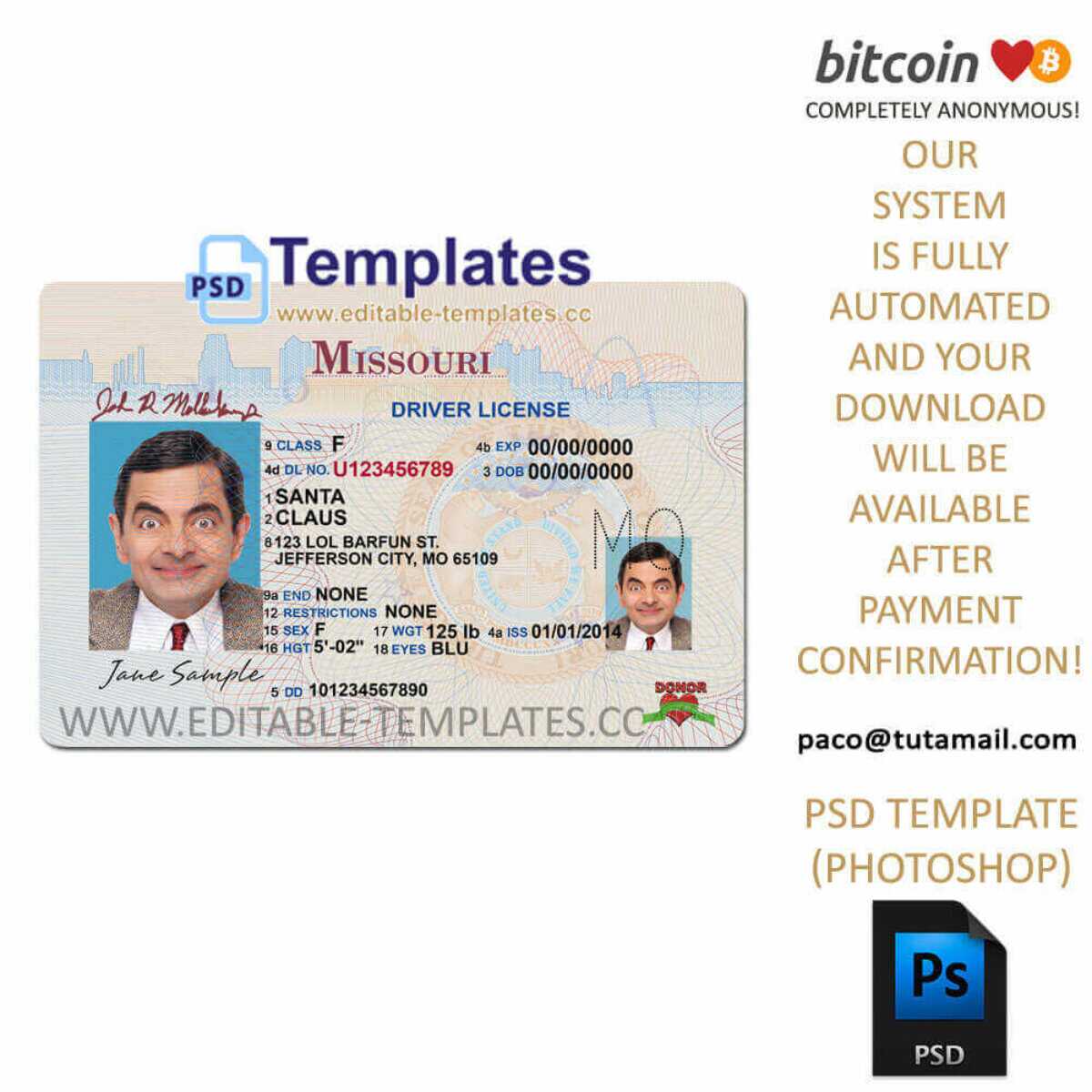 Simply download the template, open it in Photoshop, and customize the text and graphics to your liking. Enjoy your new personalized driver license template! Best quality Missouri id template.