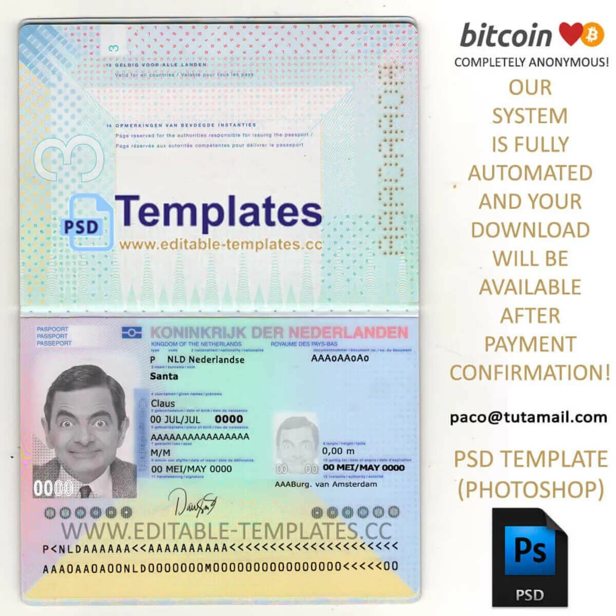 Fully editable Netherland (Dutch) E-Passport Template PSD (photoshop)