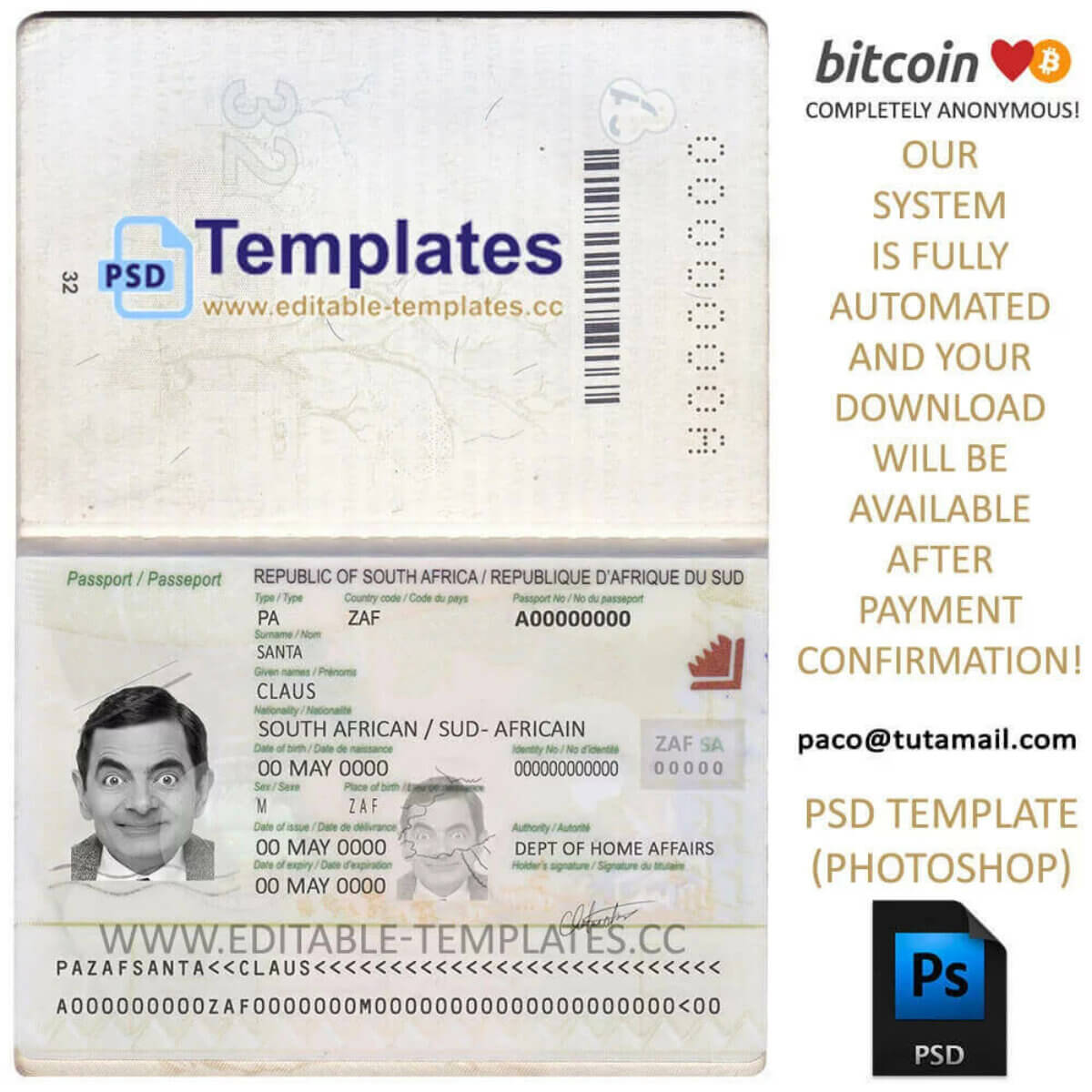 Fully editable South Africa Passport Template PSD (photoshop)